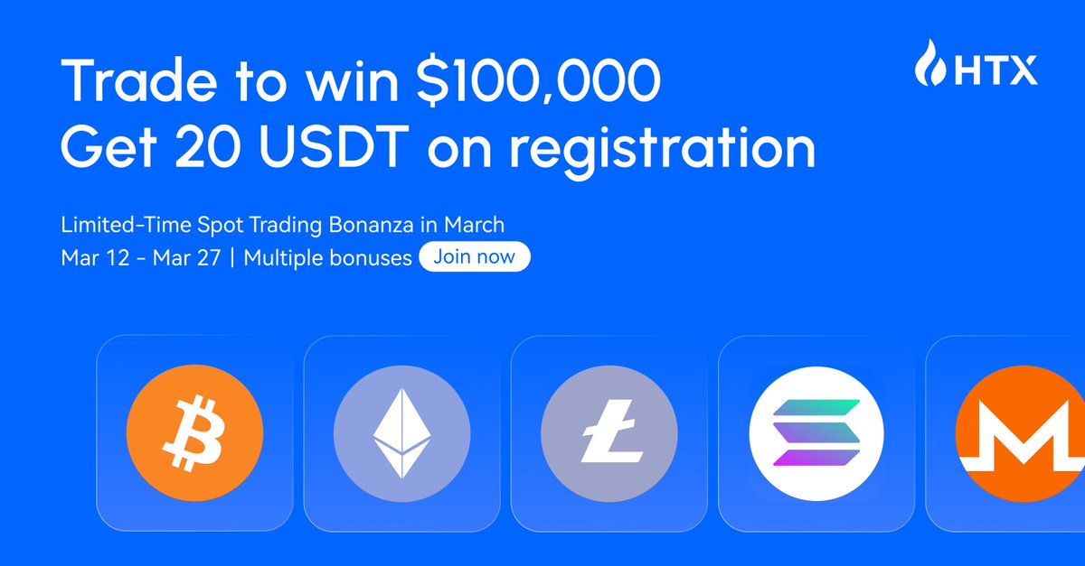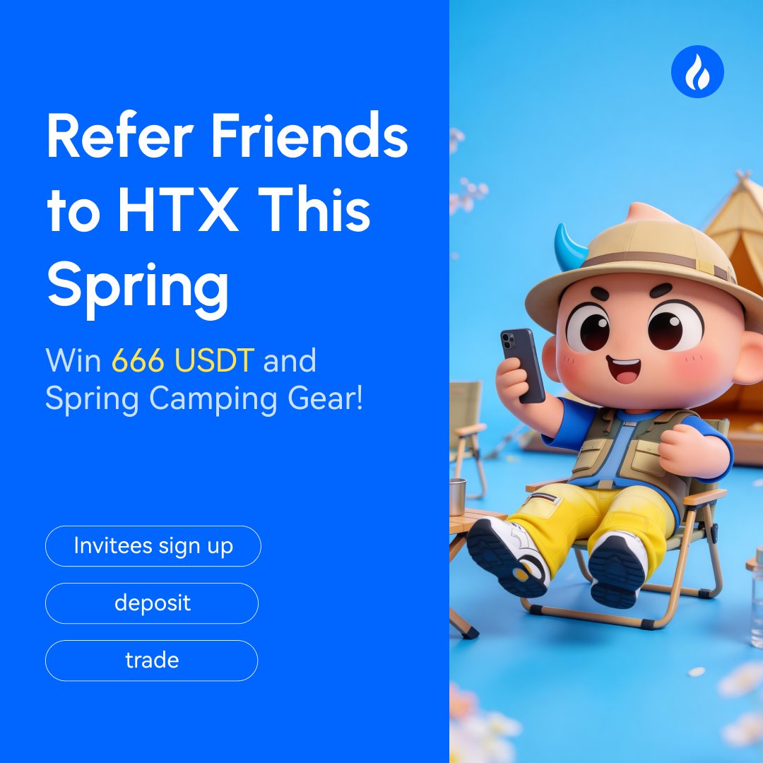 Win: Spring camping gear, 666 USDT, and trending tokens like BTC, ETH, $HTX.