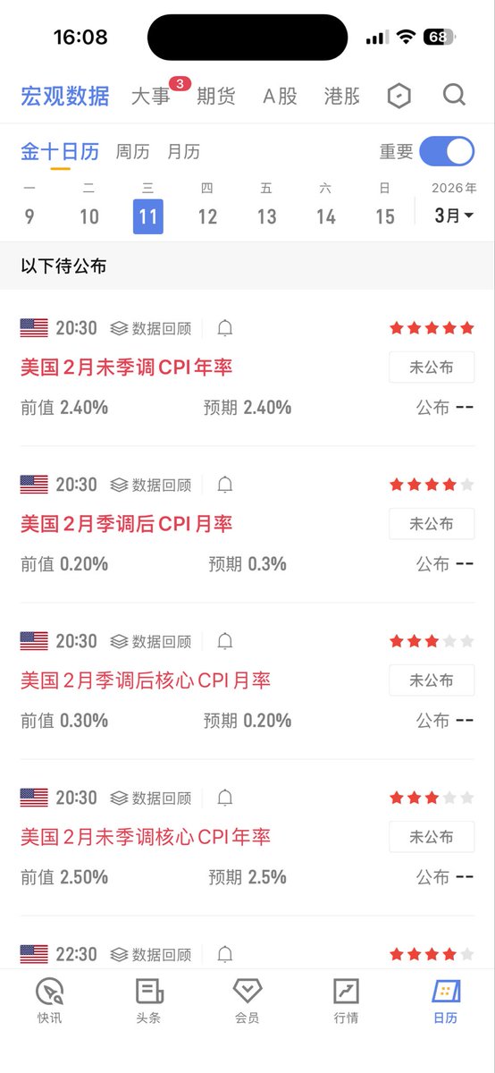 美国二月份 CPI数据将于今晚20:30公布