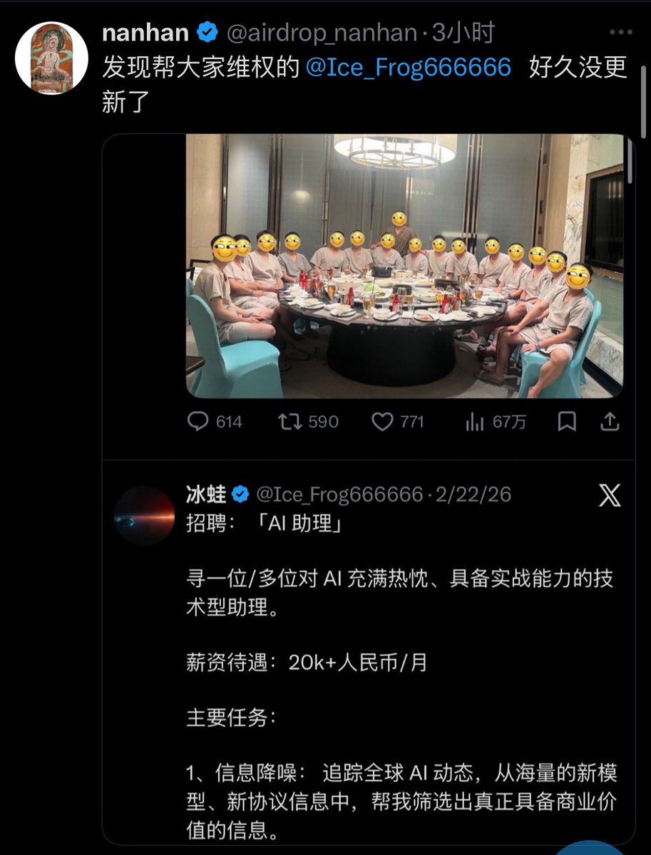 人性总是如此:只要你在一件事上哪怕获得了一点点收益,就一定会有人认定,你本质上是不干净的。那些认为我仅仅是搞流量才做这件事的人,不仅低估了维权的难度,更是高估了,所谓流量的价值,对我冰蛙而言就是九牛一毛,我随时可以舍去不要,我说的。