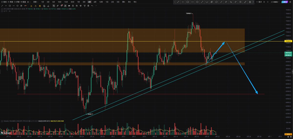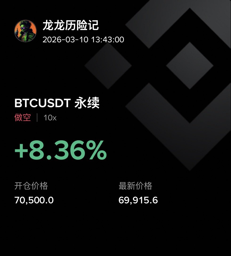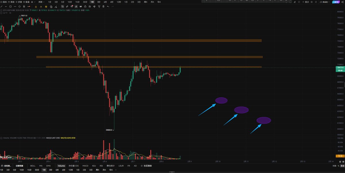 4、退一万步讲,如果继续上涨74000上方到更高的位置,龙哥想说上方重重压力,这里又不是熊市大底,谁来给你拉盘!所以就算这里被套,记住龙哥的话,控制好仓位,被套终究会比踏空舒服!不信的你等跌破65000再去追空吧! #BTC $BTC