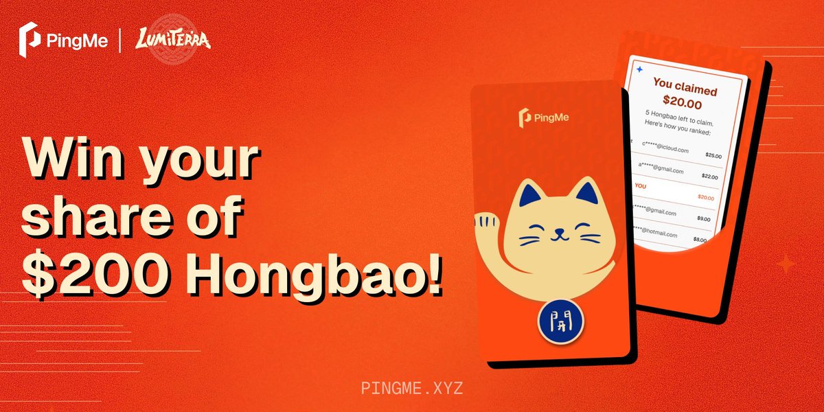 Together with @PingMe_xyz , we’re giving away 10 Hongbao 🧧