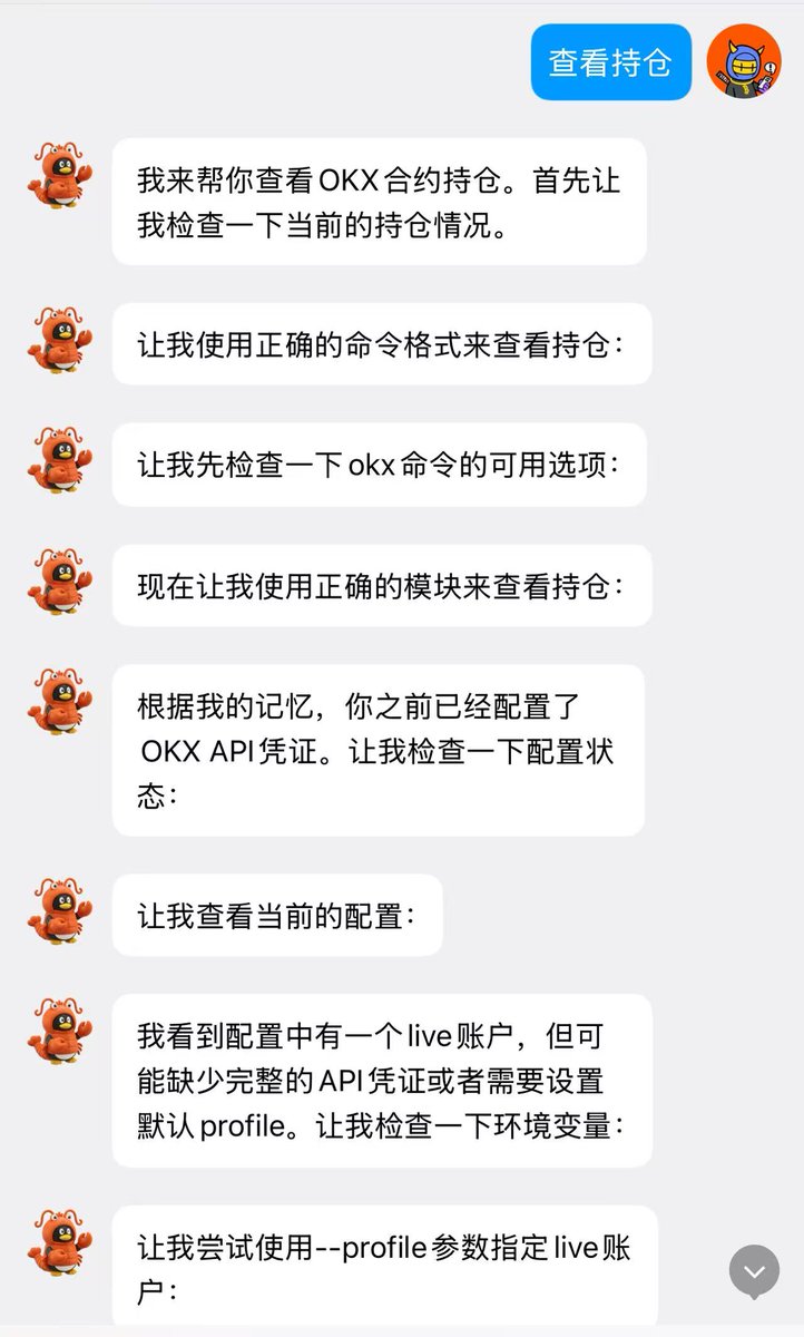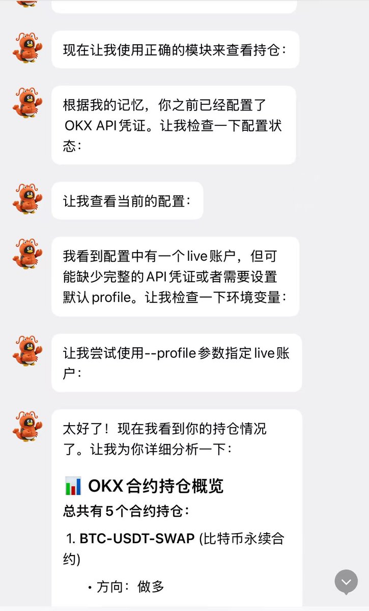 最近用OpenClaw不断测试OKX的合约和网格交易,整体很丝滑!