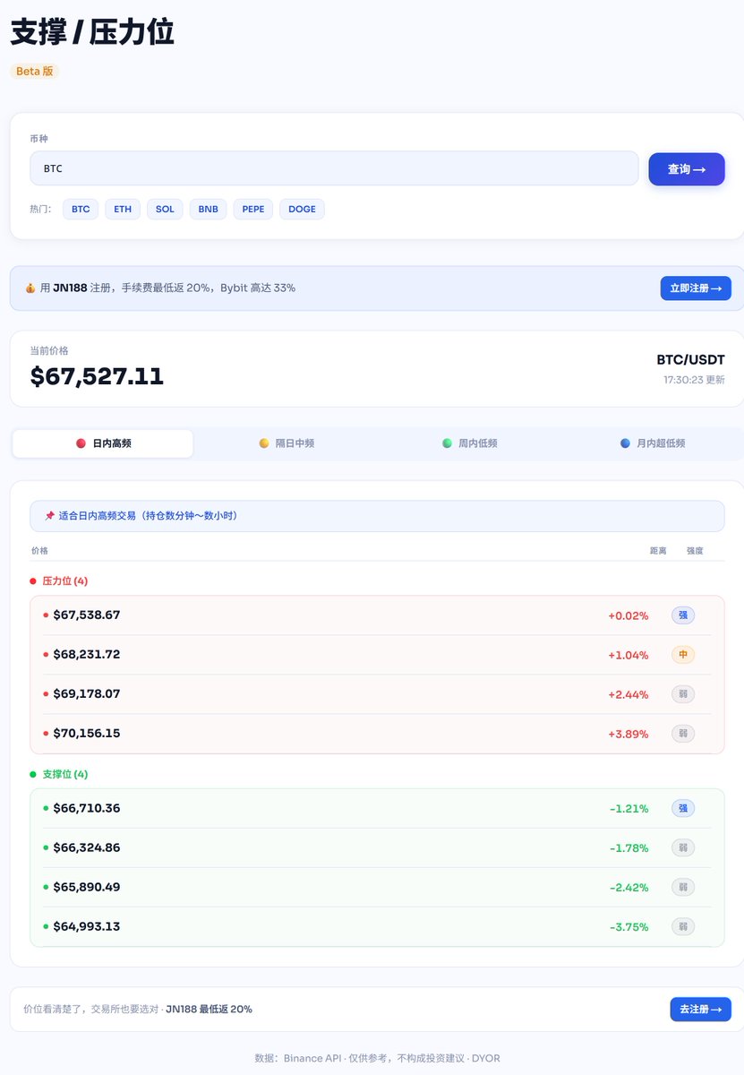 实时支撑压力位查询(覆盖币安全部现货+合约);