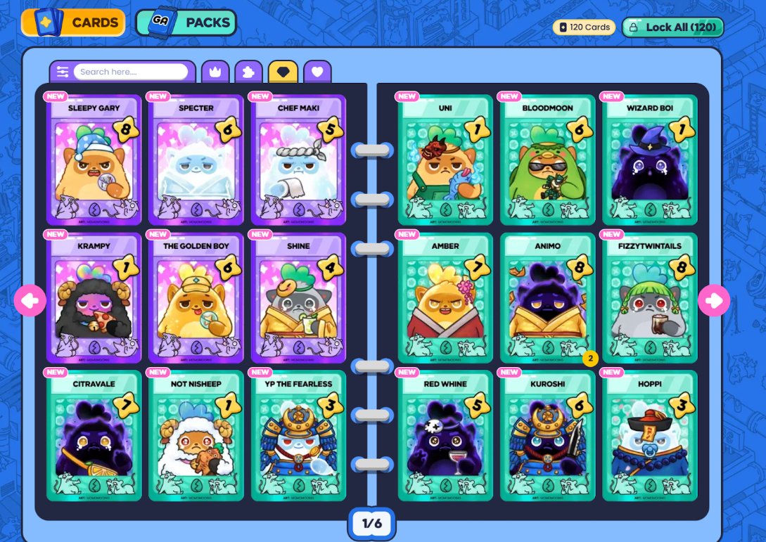 吐槽一下:充值入口藏得贼深。Buy Now 死活点不了,结果发现要先买 GEM 才能买卡包,建议项目方优化一下 。