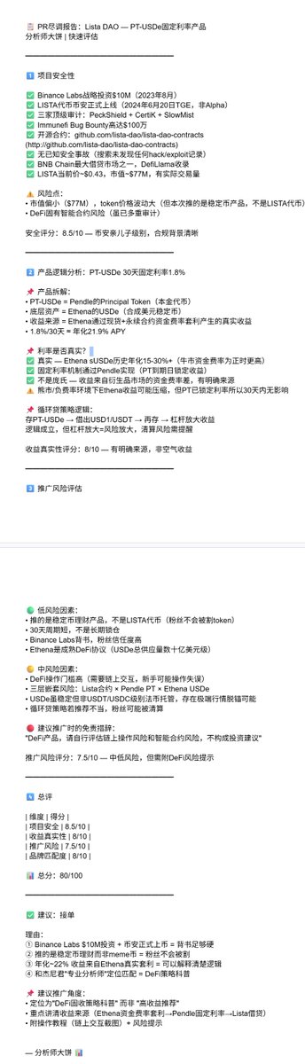 用杰尼君的小龙虾团队 @openclaw 跑了 @lista_dao 的尽调,过程还是有点惊喜。