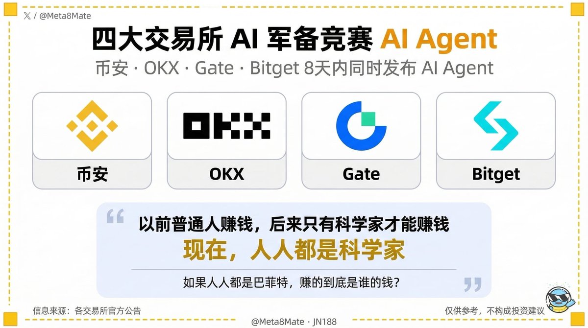 有点意思,半个月内,币安、OKX、Gate、Bitget四大交易所同时上了AI Agent,对普通用户来说意味着什么?