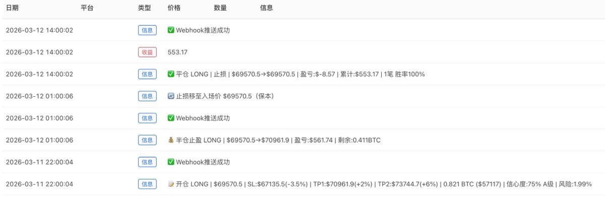 昨晚22:00开多,凌晨01:00自动半仓止盈,顺手把止损移到保本位。