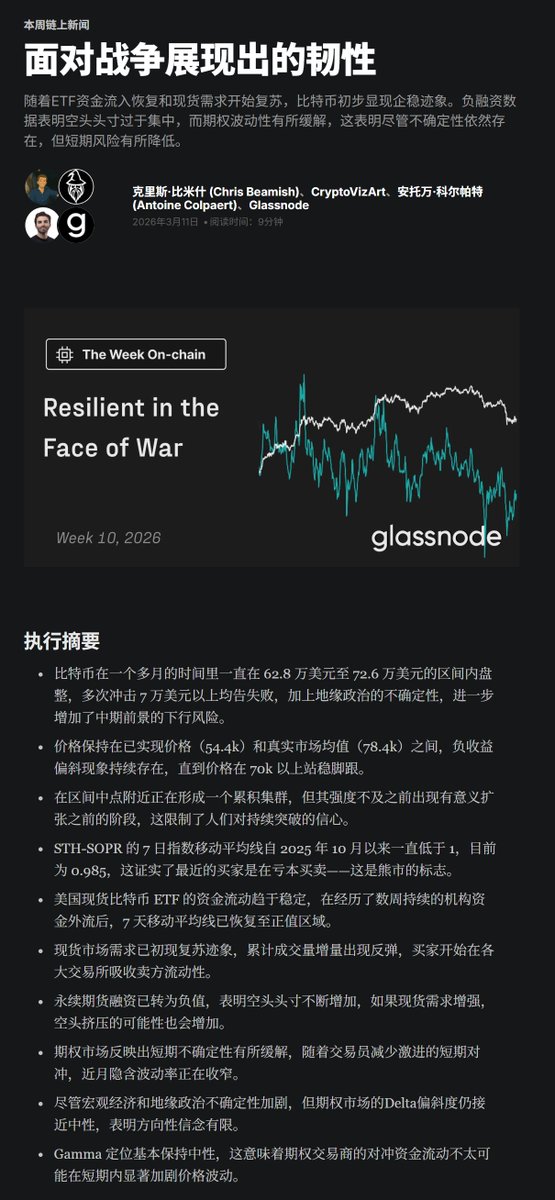 Glassnode最新周报,标题为"战争阴影下的韧性" , 这个标题就选得很灵性。