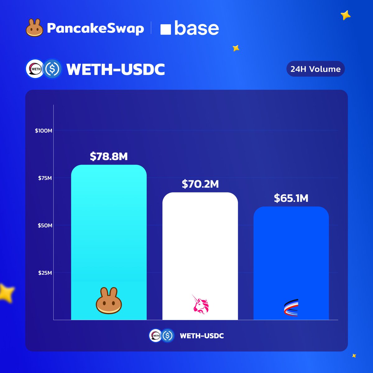 WETH-USDC on PancakeSwap just clocked $78.8M in volume in the last 24 hours. The most active pool across any DEX.