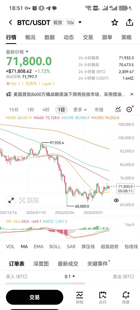 @MrWaveMann @Jason60704294 级别上似乎是15mins,有没有做完整个趋势一次平还是中枢时就减仓待观察,另外我可能做长线比较多至少4h日线以上,我个人是2倍一直长拿,中间做T和对冲减少资金费率损失,等我多一次打回去我就可以验证我的想法了