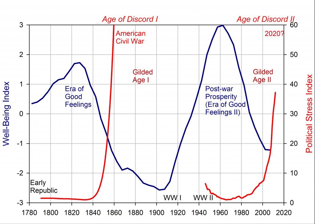 这不是某种悲观的直觉,而是三套精准的历史预言,正在同时拉响警报。达利欧、尼尔·豪威与图尔钦,这三位分别从财富、世代和社会结构的视角,很早预言且描述了我们正面临的这场大厦将倾的危机。