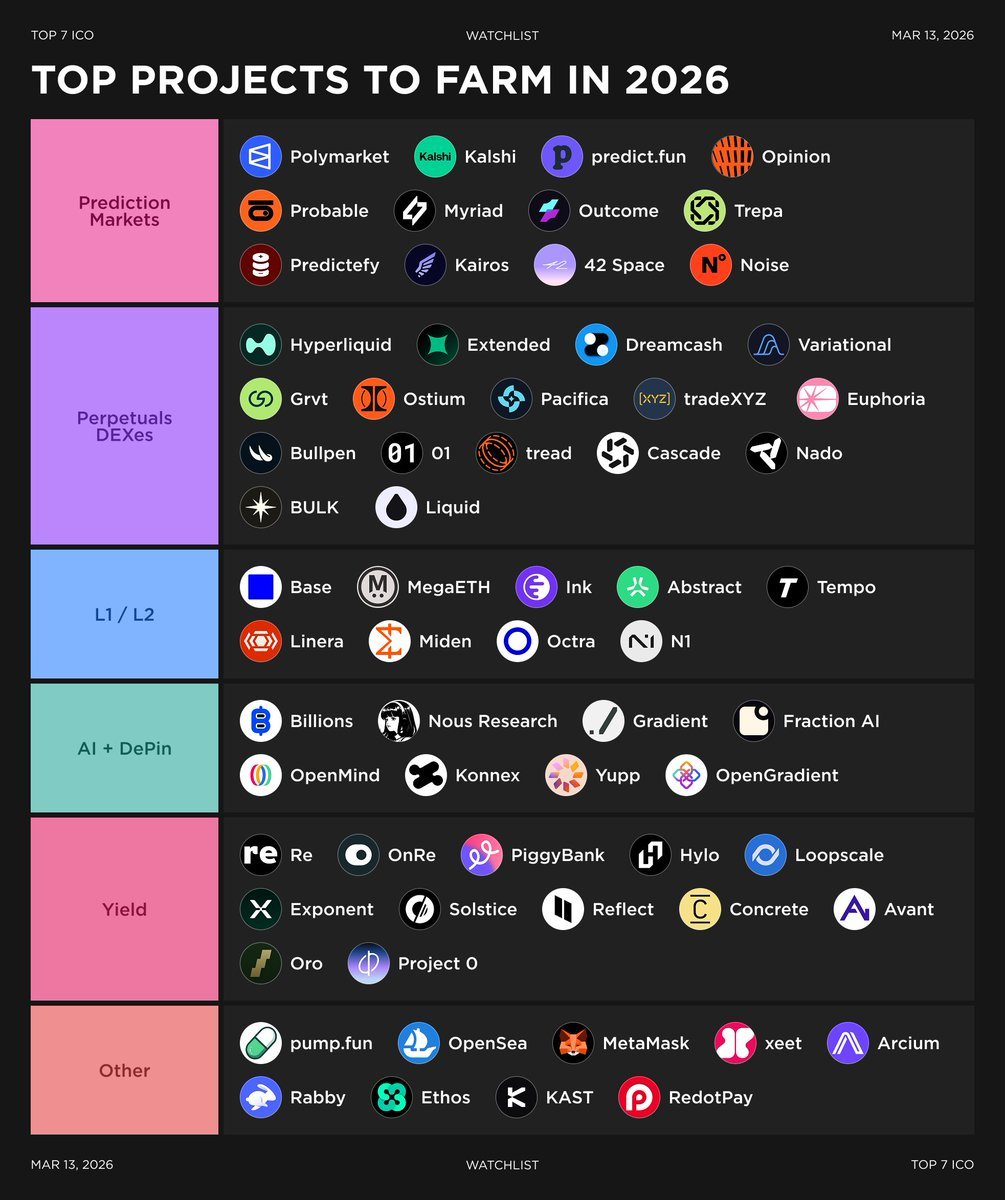 重点主攻: 现在的市场资金非常看重“背景”。OpenSea、Polymarket 和 Dawn Internet 这三个是 2026 年确定性最高的“大鱼”,建议分配 60% 的精力。