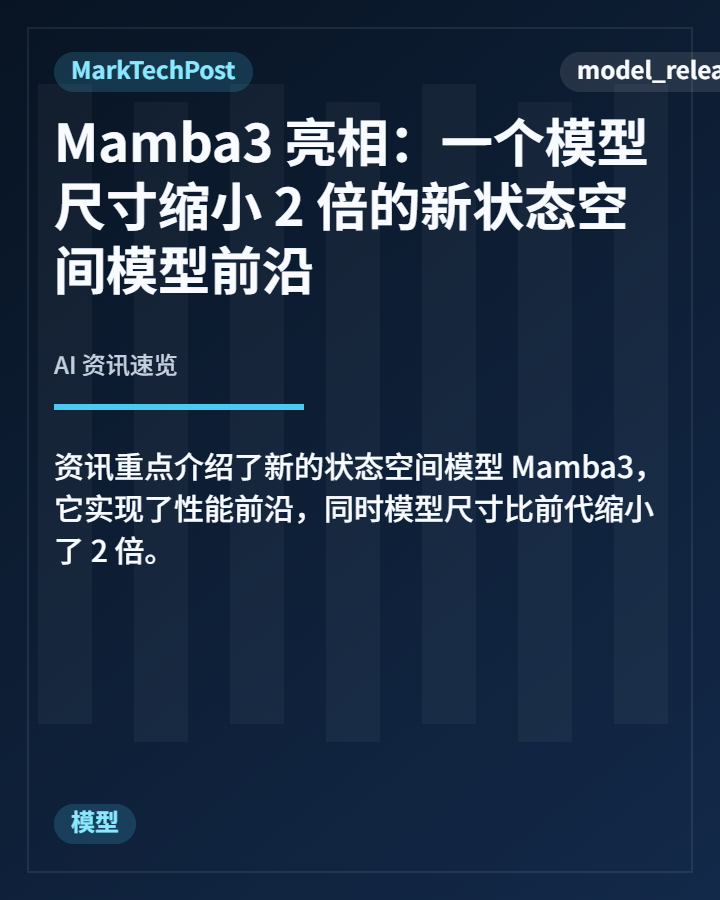5. 新发布的 Mamba3 状态空间模型在保持性能前沿的同时,将模型尺寸缩小了2倍,为高效模型架构提供了新的参考。 从基础设施到模型与应用,效率与落地能力正成为明显的推进主线。