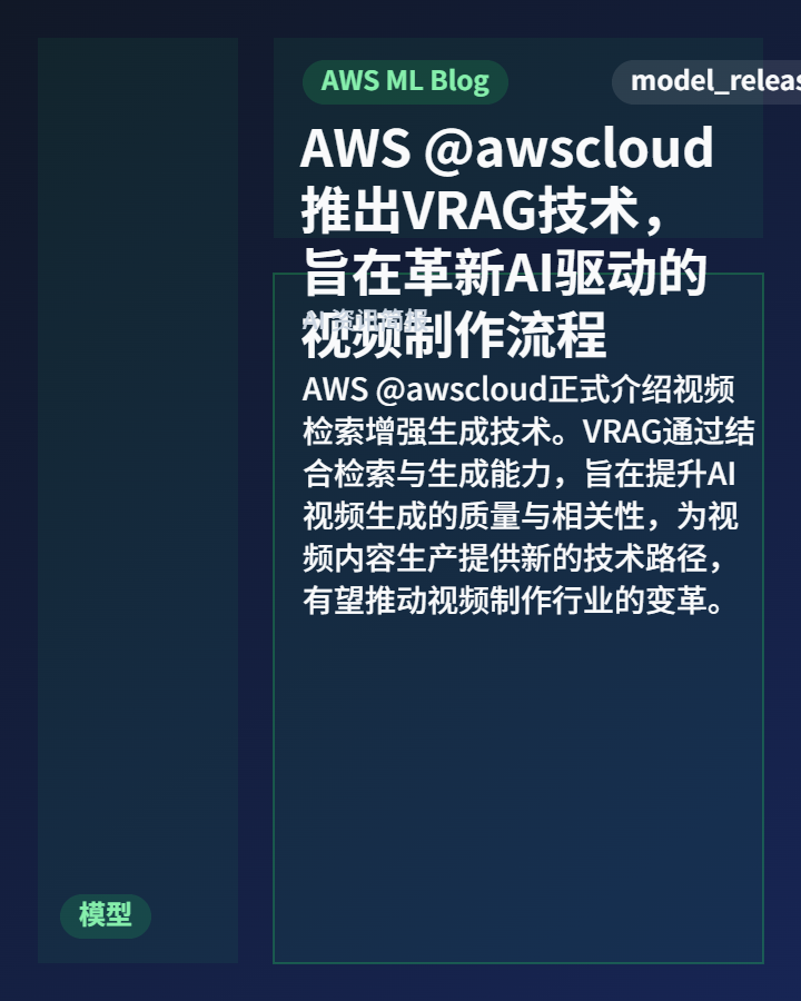 2. AWS @awscloud 推出了名为 VRAG 的视频检索增强生成技术,它结合检索与生成来提升AI视频内容的质量,旨在为视频制作流程带来革新。
