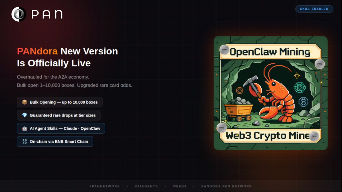 兄弟们,PAN Network @Pan_Ecosystem 推出了官方Skill,直接把这个GitHub丢给你的龙虾对话框就行,目前已支持查询BNB余额和转账,后续还即将上线开盲盒
