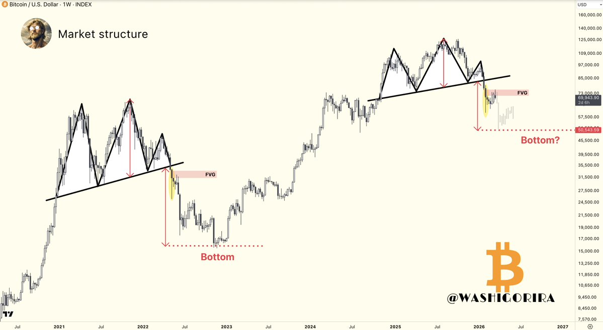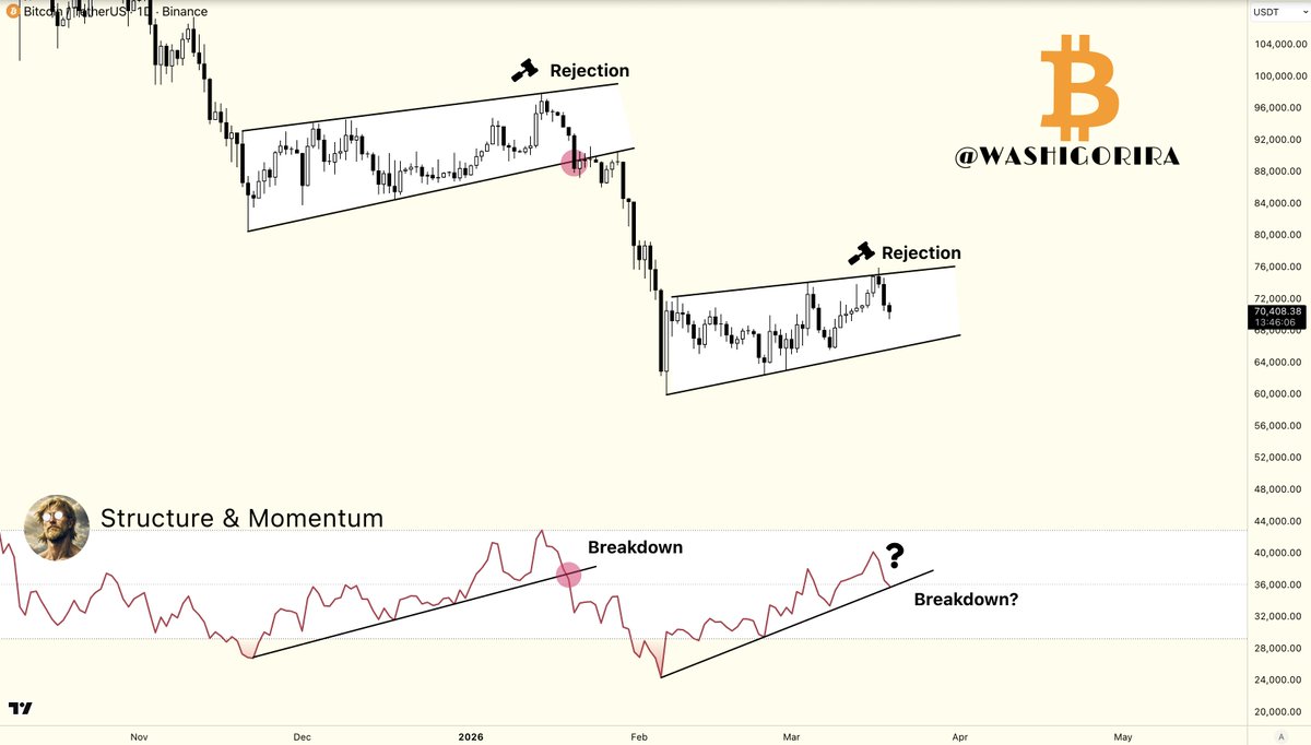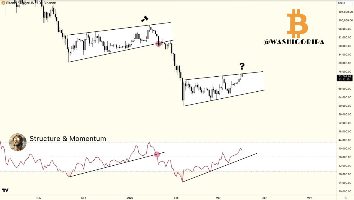A successful reclaim would open the path toward 79k–80k.