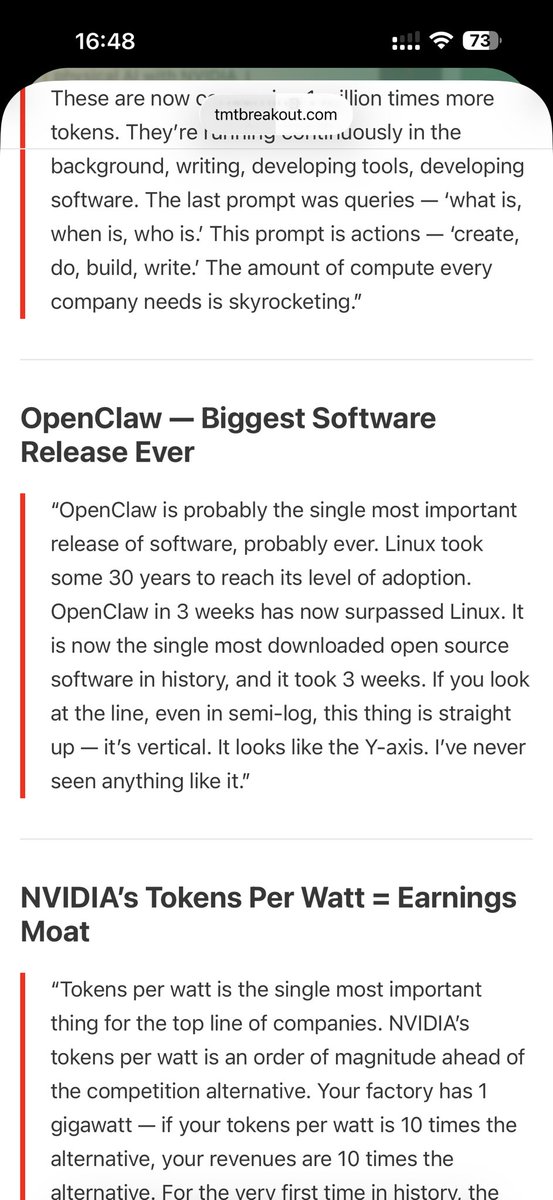 以前AI是“回答问题”,现在OpenClaw这种智能体是直接干活。算力=营收、算力=GDP,不是空话,这波是从聊天到执行的彻底革命。