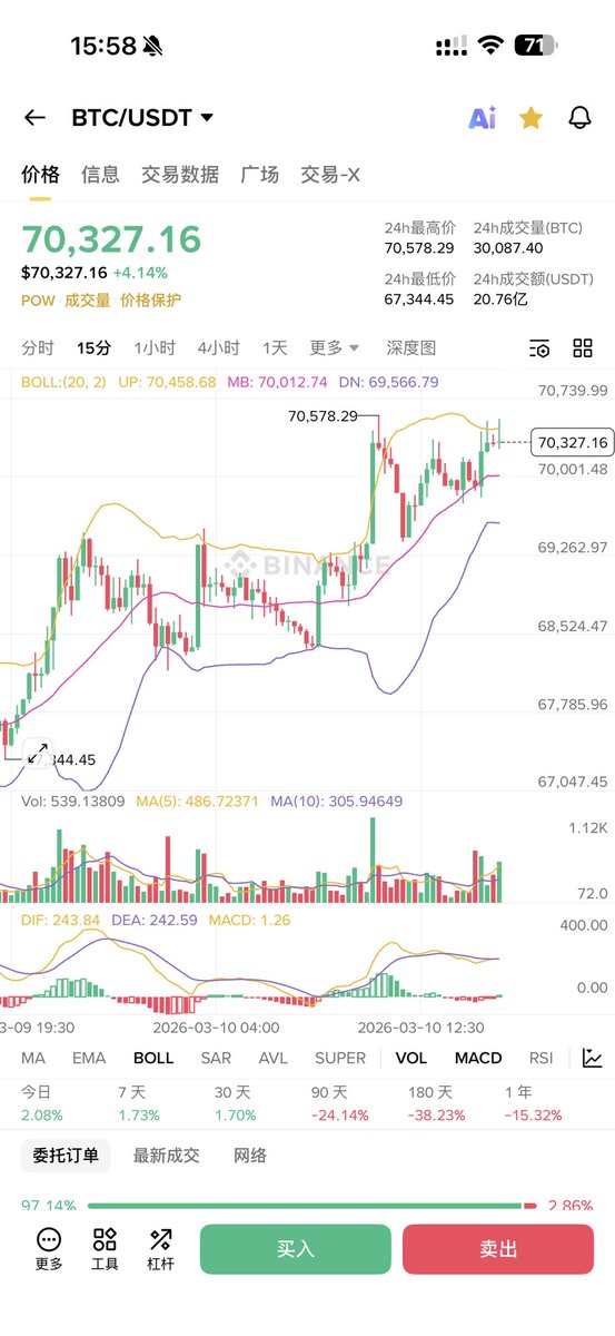 而比特币完全应验了之前的判断:油价跌=通胀降温=加息恐惧缓解=流动性复苏,直接暴力反弹重回7万大关,把「流动性温度计」属性拉满。