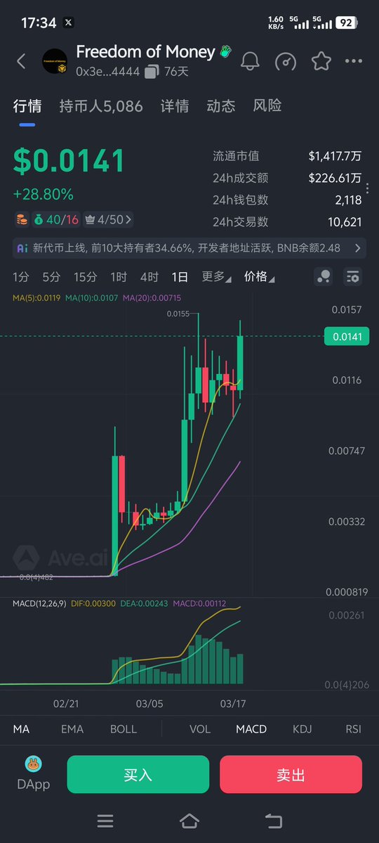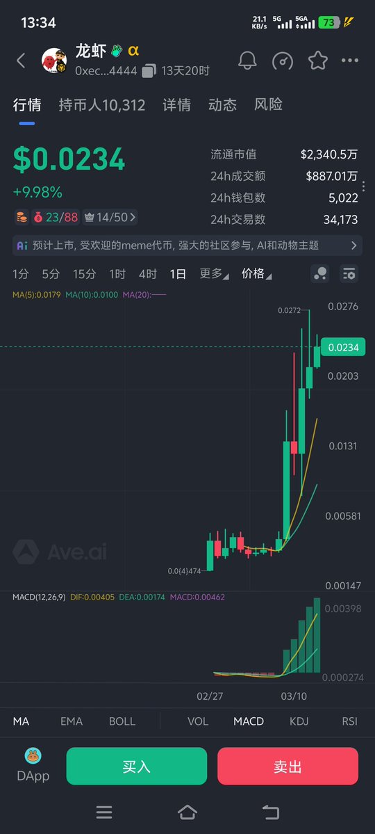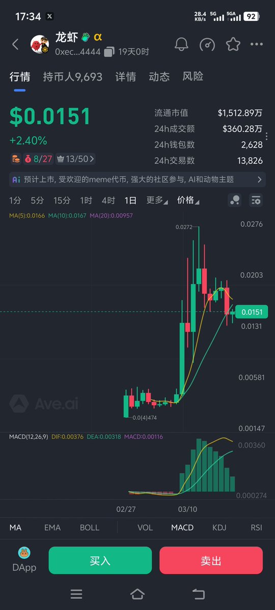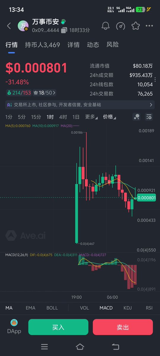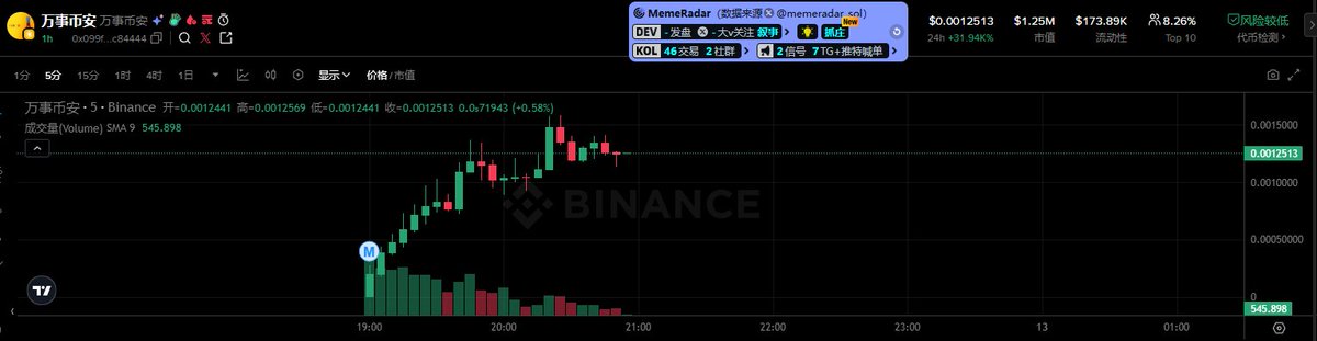 目前市值1400万,这个K线走下去,估计要上Alpha了,不过有货的记得利好公布先止盈,这个Meme之前买过,赚了一点就走了