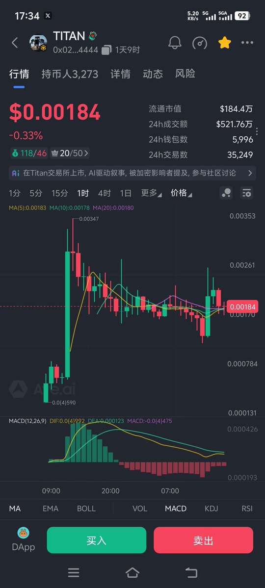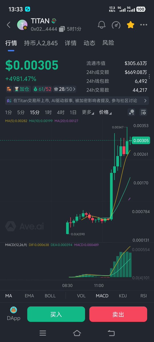 TITAN泰坦,叙事概念Cz投资的机器人啥的,反正也没名牌,不然也不止这点市值了,目前1.7M附近,小仓博弈一下吧