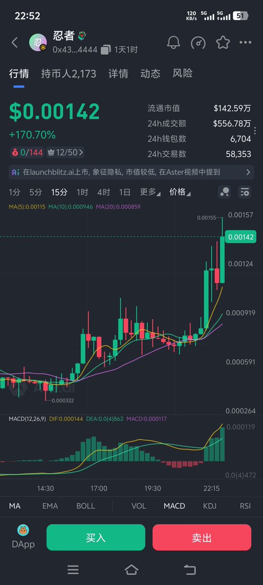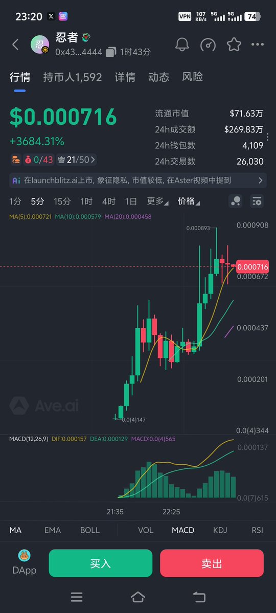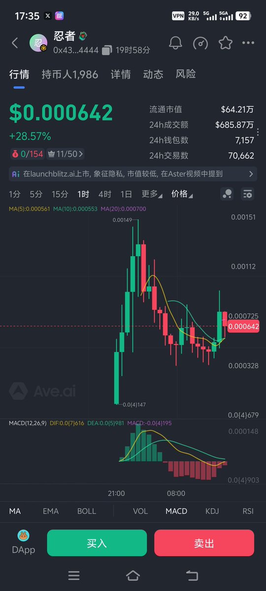 忍者,昨天高点差不多翻倍,没走,目前市值回调到了60万附近,已经跌破成本位置,但是炒作叙事概念还是有的,毕竟 @Aster_DEX 的图腾头标,期待起死回生,交易量还是很大的!