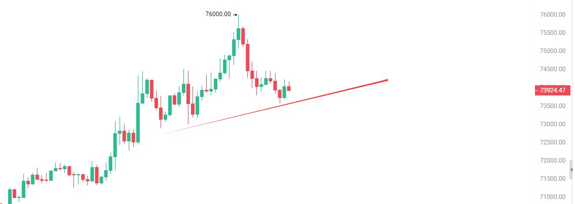 BTC 73500附近多 跌破73000止损