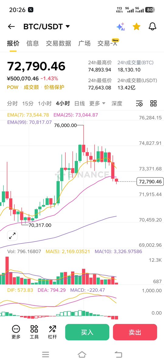 目前盘口数据,比特币BTC74000附近,以太坊ETH2320附近,目前价格也就是横盘区间的支撑区间
