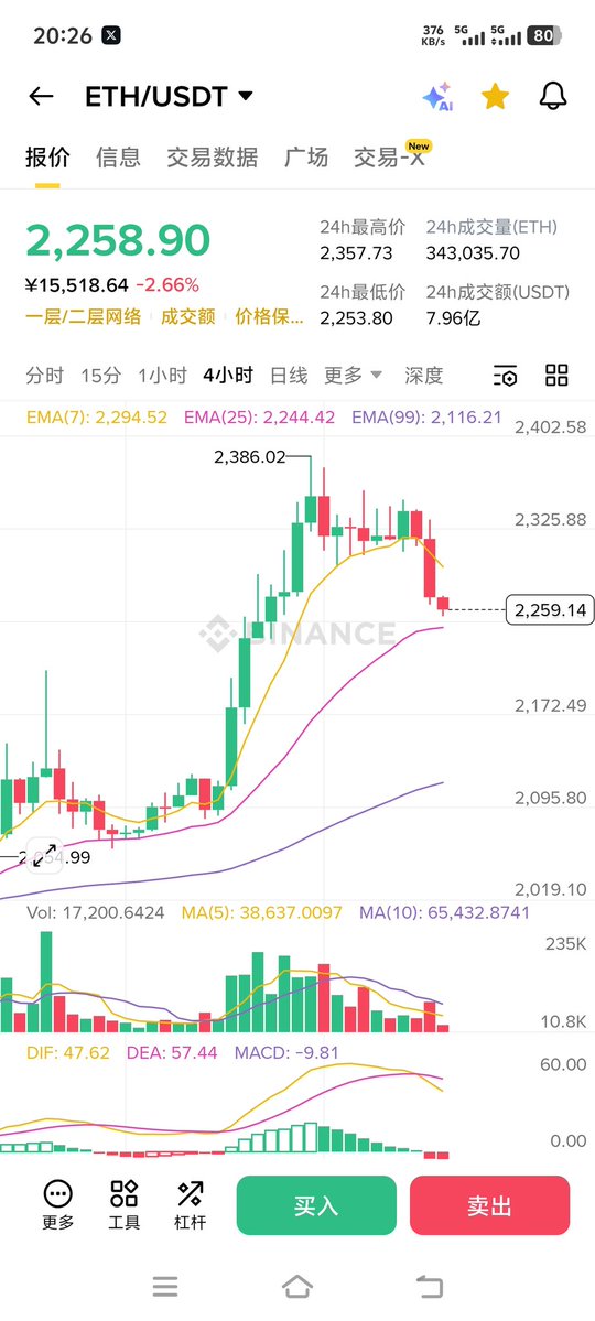 ETH2305附近多 跌破2290止损