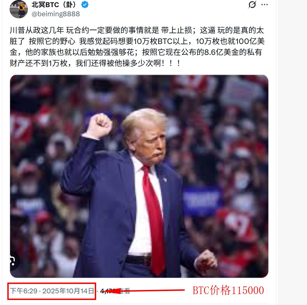 但是越了解川普越知道BTC接下来会发生什么。我在去年10月份BTC价格115000的时候突发奇想 ,这一家子爱钱如命的性格需要多少BTC,因为归根到底BTC是最好的隐私财富。按照当时能查的到是不到1万枚市值8.6亿美金,而交易所老板手里持有BTC超过10万枚的我知道的有好几个。以川普的爱财如命的性格 没有理由不利用手里的权利吃一个大饱,而要发一笔横财的前提需要足够的BTC。
