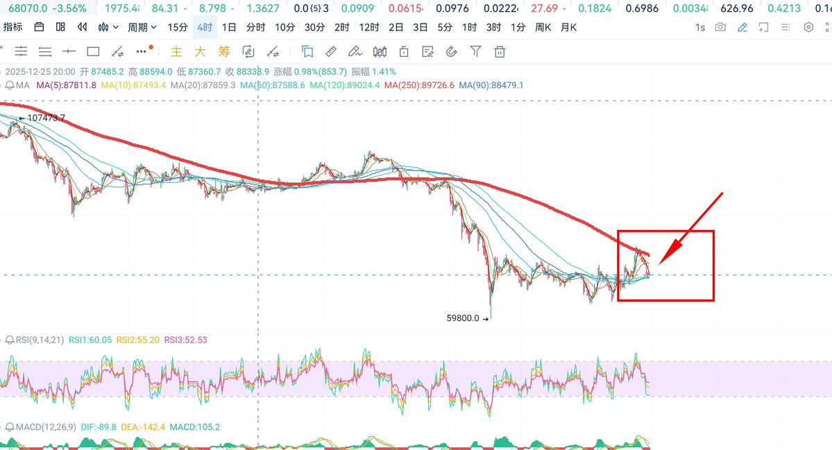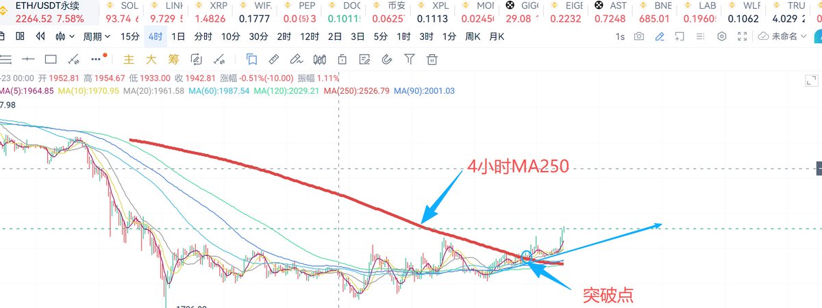 2、4小时MA250在K线里面有非常重要的作用,价格跌破这条线收不上去往往意味着要跌很长一段时间,同样价格突破这条红线代表着开始一段上涨走势,特别是这种构筑平一个震荡平台的后的转向,最差最差现货绝对可以布局。
