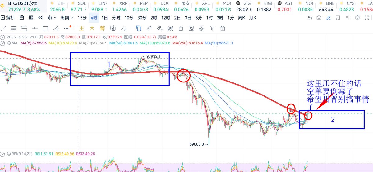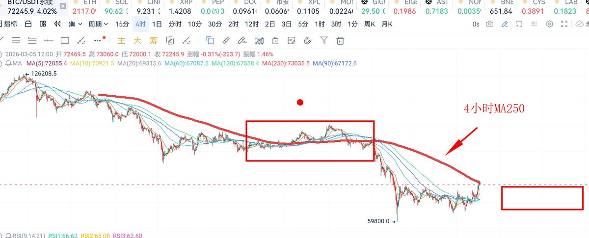 3天前大盘一波暴涨 ,然后紧接着连跌3天,完美的清理一波空头,然后洗多头。技术上主流币这样一天涨10几个点这种跌法是不合理的,通常放量大阳线后 至少能保持3天的横盘,上一次出现这样这样的奇怪走势是在去年的以色列 美国轰炸伊朗,一样的配方 一样的无耻