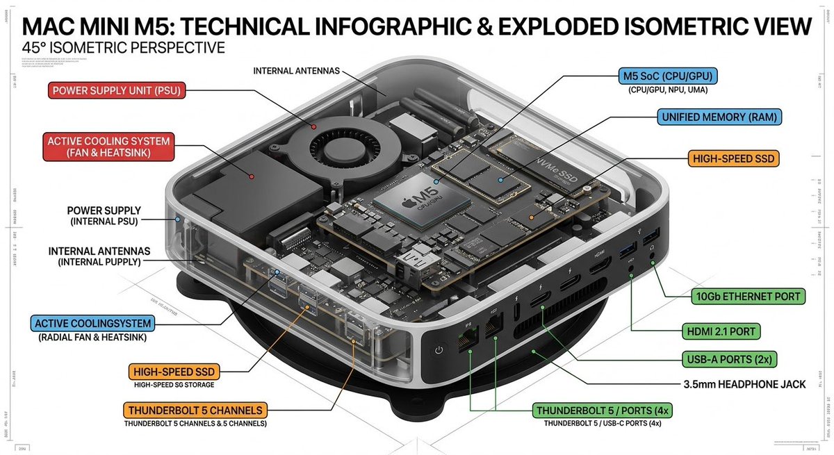Create a technical infographic of [OBJECT] with a 45-degree isometric 3D perspective showing the device slightly tilted to reveal depth and dimension. Combine a realistic photoreal render with black ink technical annotations on pure white background. Include: Key component labels with color-coded callout boxes Internal component visibility through transparent/