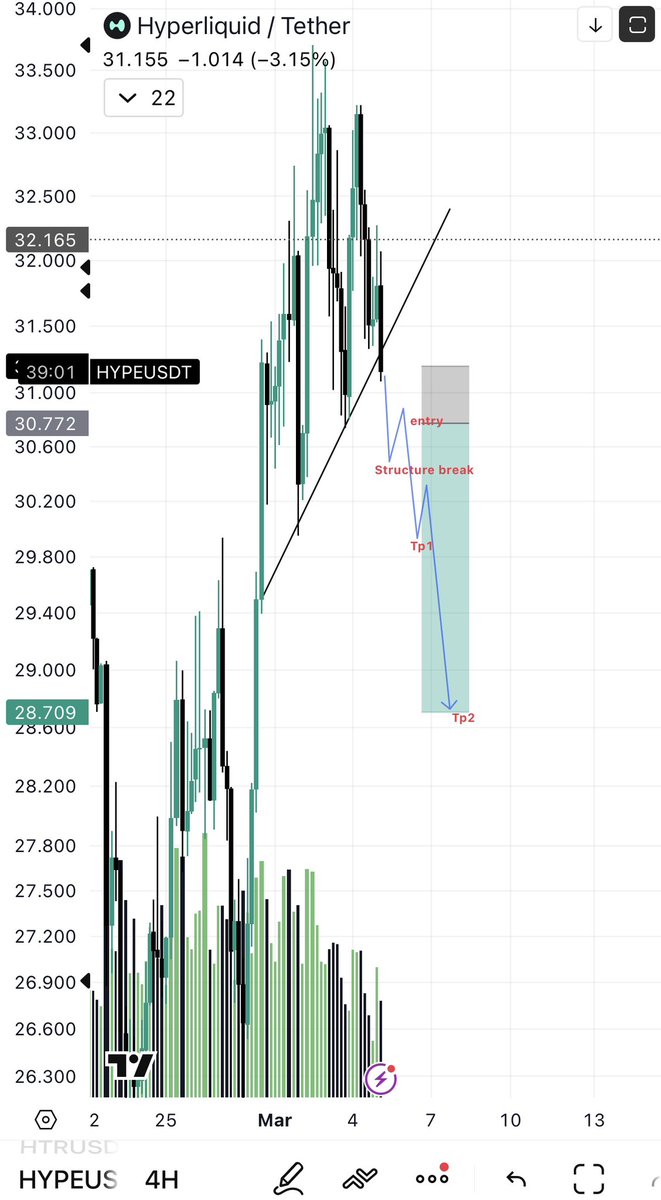 Leverage traders book profits. Spot investors check the break down chart of $hype and decide