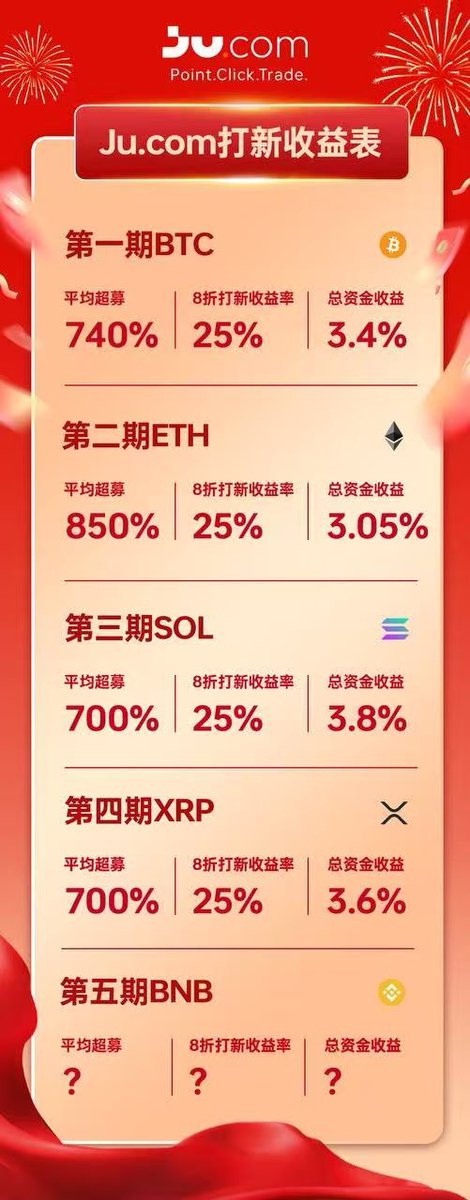 目前已经超预期完成了BTC ,ETH,SOL,XRP的打新,现在即将开始BNB 的打新,还会上线LTC,DOGE,TRX,ADA等币。