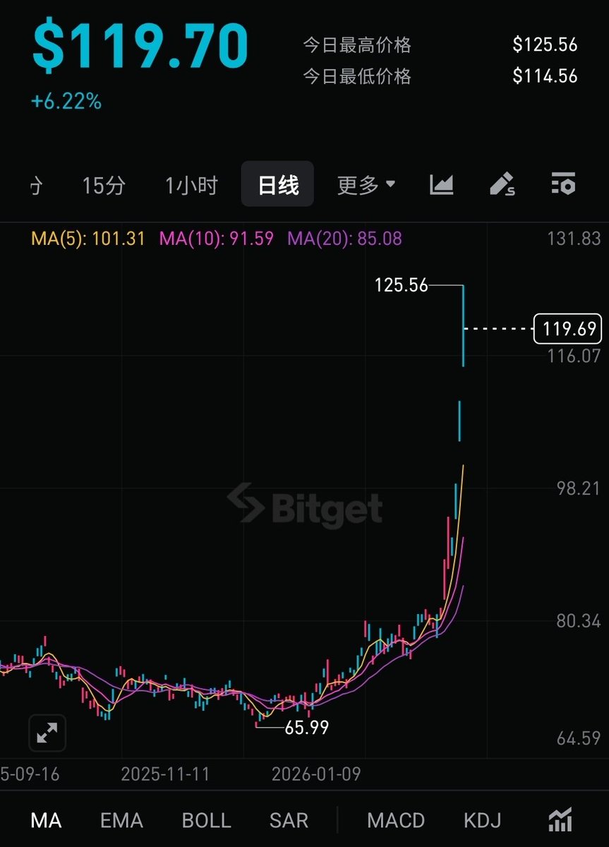部分交易数据显示,单日涨幅最高超过 30%,油价在短时间内从 90 美元下方迅速攀升至 125 美元上方,市场情绪极度恐慌 。