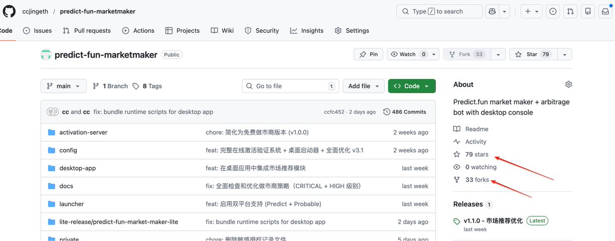预测市场做市商脚本目前已经 115🌟 了