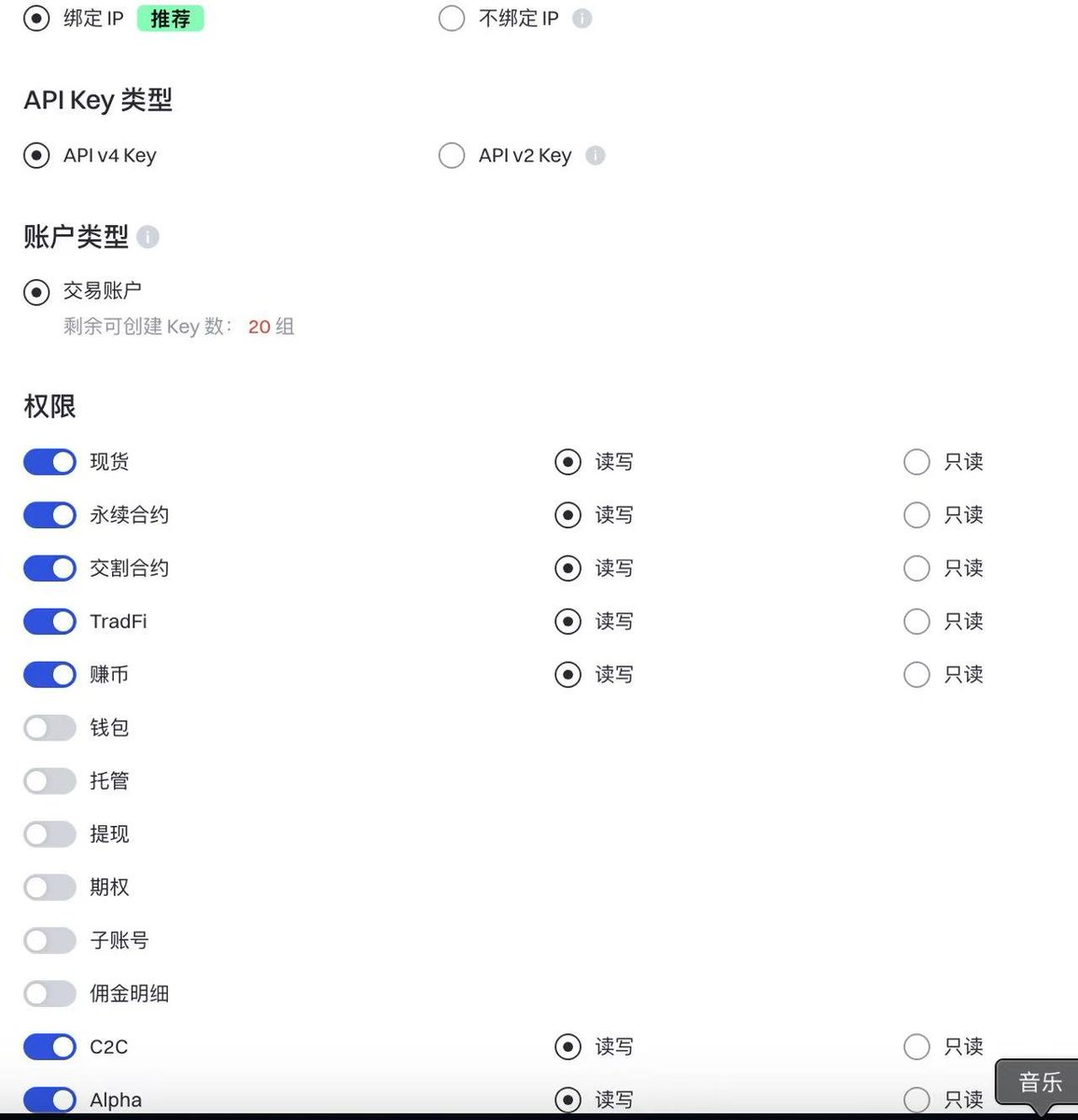 4️⃣授权 Gate API(这里一定要注意权限和风险)