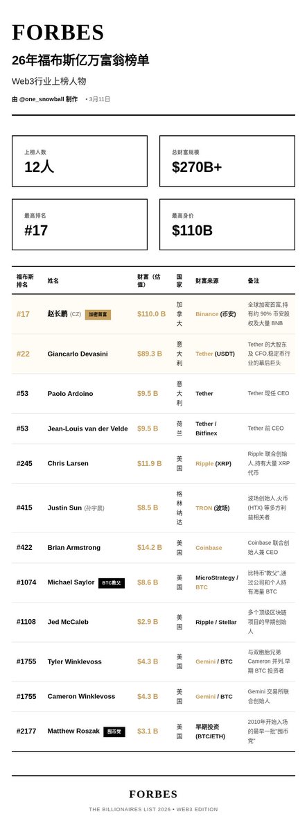 如果 @cz_binance 的福布斯排行榜属实的话