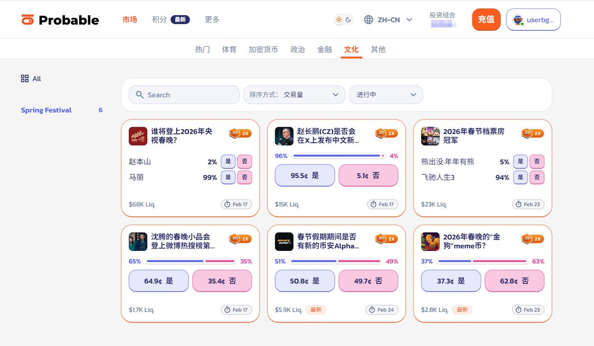 二是目前上线了「春节预测专场」,交易享 2 倍积分加成。