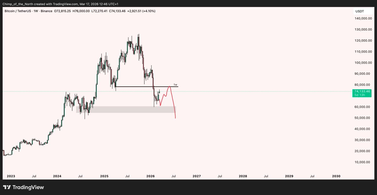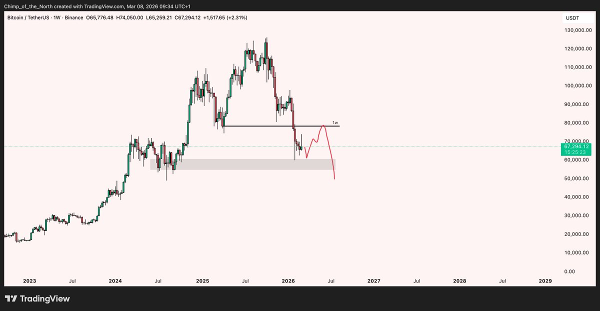 I personally think we'll go down again but in case we go up, this is the level to break.