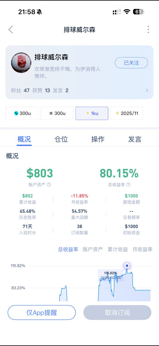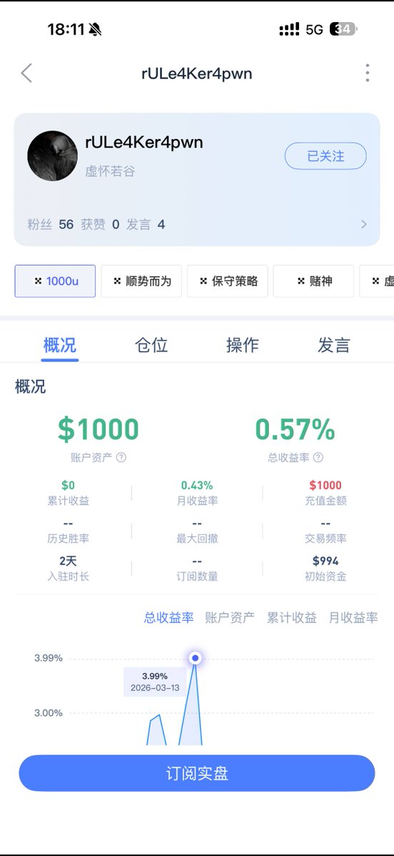 另外本期实盘资助的本金是由第二期实盘选手【排球威尔森】赞助,我之前的要求是收益200%后归还本金,但其在实盘翻倍后,主动提出归还本金,用于赞助下一个选手,这就是什么品味的KOL吸引什么品味的粉丝,堪称大格局;