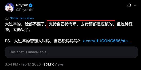 另外看到币圈岳不群倪狗@PhyrexNi 也卷入其中,简直笑掉大牙,币圈持续抨击倪狗的KOL中我应该算是独一份了吧,倪狗和哼狗不是一种类型的,嗯哼@EnHeng456属于秦桧式的跪舔权贵的狗,倪狗就是岳不群式的忽悠小白、充当项目方白手套的伪君子;
