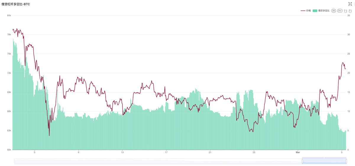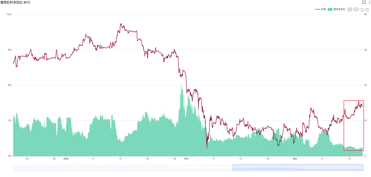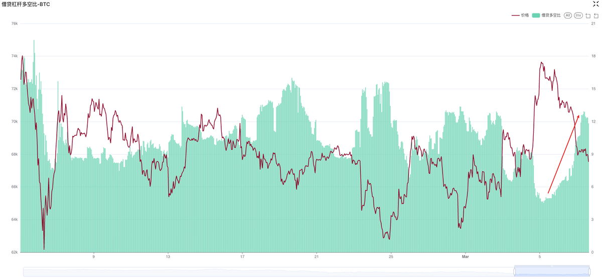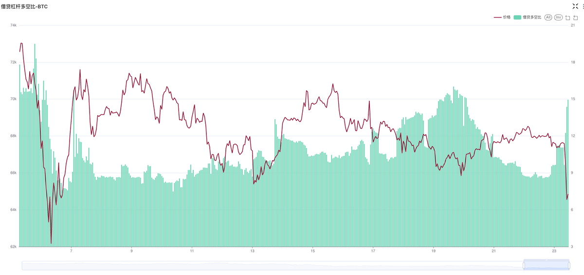 现货杠杆:现货杠杆市场上的多头猛猛借U买入,多头杠杆比例创下了最近半年新高;