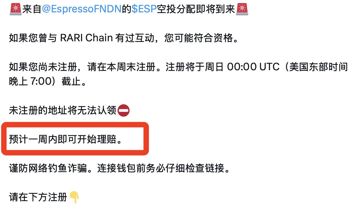 @EspressoSys 的空投注册在2月9号结束,最近又更新了一些空投名单