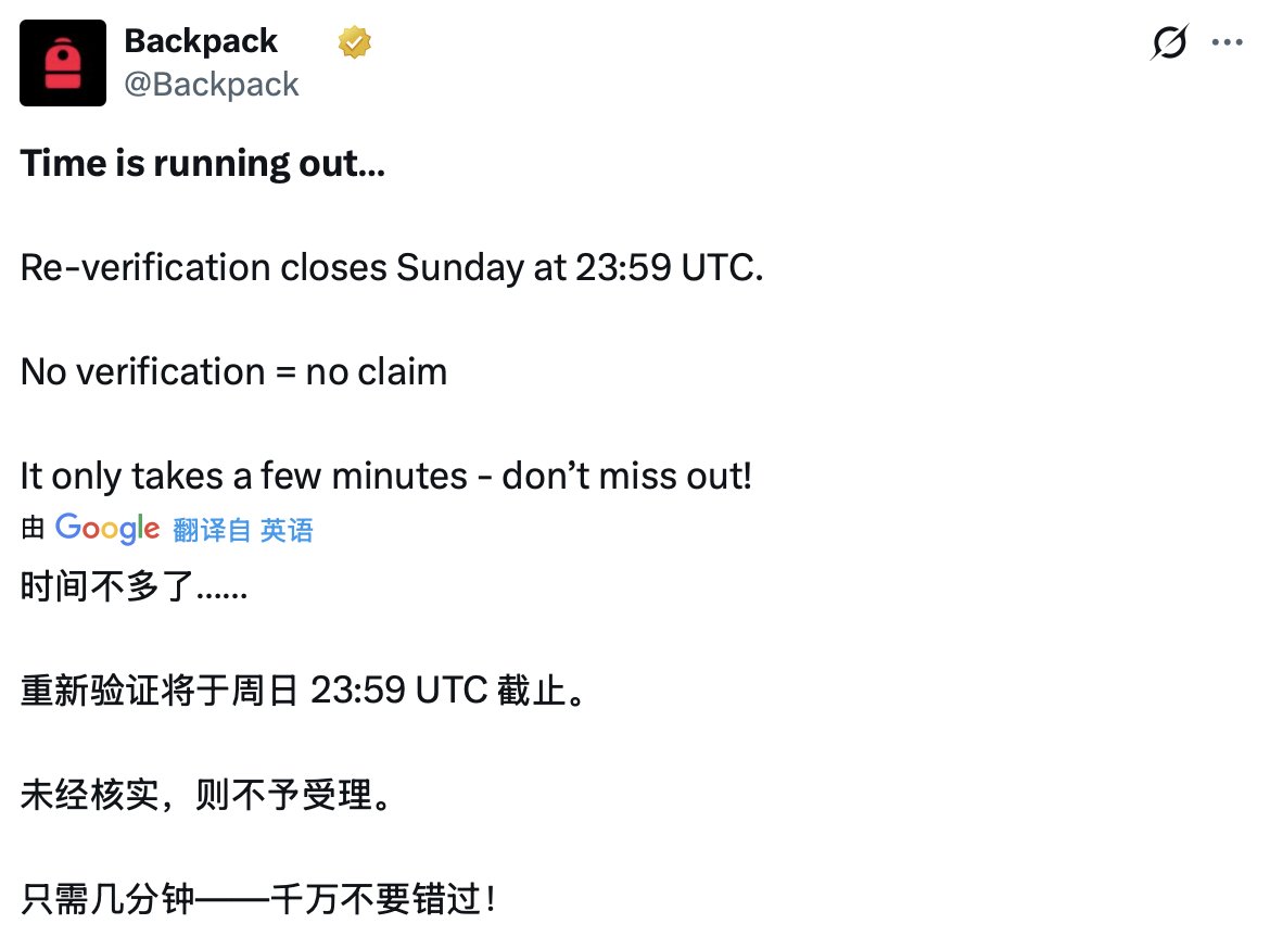 @Backpack 应该就是这个月tge了,二次人脸没过的抓紧时间过下