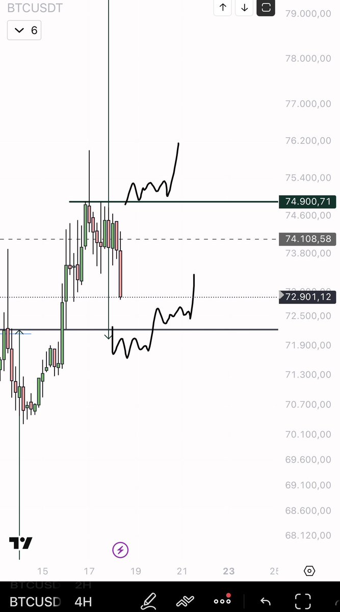 The long position I advised you to open in the blue zone has done exactly what it was supposed to do $BTC