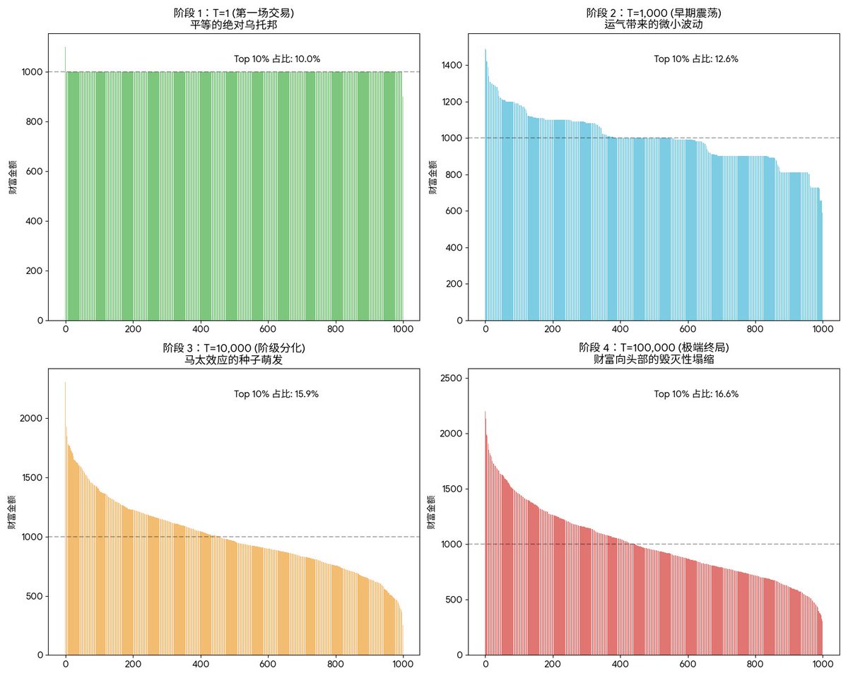 看着财富从均匀分布到越来越集中在少数人手中,就像看一场财富的自然选择