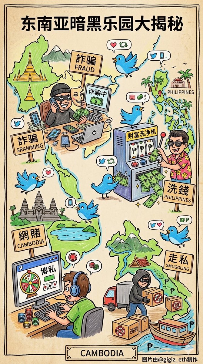 也就是常说的:诈骗在缅甸,洗钱在菲律宾,网赌在柬埔寨,走私在老挝