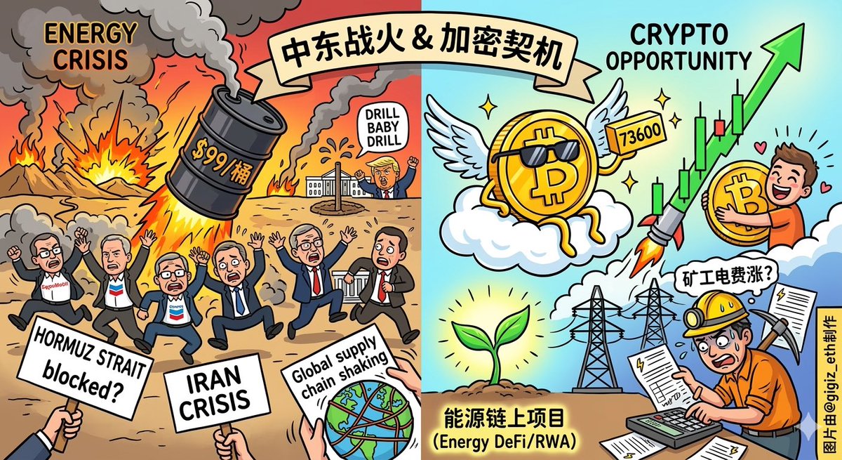 今天又被国际新闻炸醒了,油价直冲99刀/桶,中东战火一烧,全球供应链直接抖三抖,矿工电费要不要涨?DeFi里那些能源概念项目是不是该醒醒了?