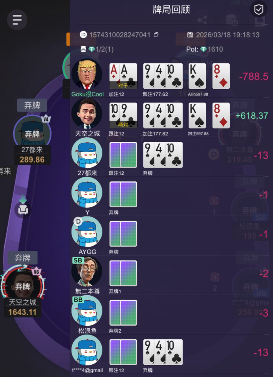 说心里话 @CreaMyHaOsCar 真是的老粉丝了,从我做推特开始,就一直在互动,也在社区对抗了很多次,虽然一开始几乎是必输无疑,现在经过2年的洗礼,满满的奥斯卡已经看不懂我的牌了,说明我进步了,哈哈哈哈